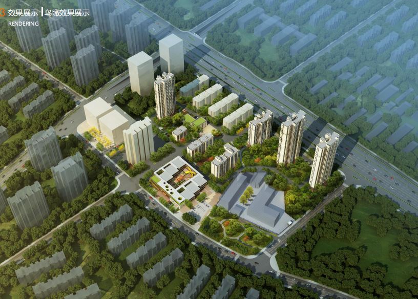 本项目位于安徽省合肥市瑶海区郎溪路与大成路交叉口西北侧,总用地面积约为34562.92平方米,总建筑面积约77370.59平方米,占地51.84亩。局部含有一层地下室,地下室建筑面积为17311.27平方米。包含7栋主楼,一栋配套用房,一栋物业用房,一栋幼儿园及室外配套工程。中标价为1.9028亿,计划总工期960天。