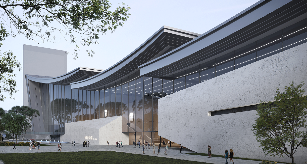 项目位于合肥市东部新中心龙岗路与滨河路交口东北角地块。建设用地面积37272.05m²,总建筑筑面积54800m²,地下建筑面积14872m²,人防建筑面积3574.76m²。项目主要包括公共博物馆的基本功能,包括基本陈列、专题陈列、文物房、临时展行、业务用房、设备用房、社会服务、游客休闲、地下车库等。合肥市博物馆项目将融入高科技,将智慧化功能充分融入建筑设计细节中,为群众提供更加便捷、高效、精准的公共服务。此外,它还将积极探索利用沉浸式环境交互等创新技术,让传统与现代"美美与共",使观众在原有平面化观展的基础上,得到耳目一新、身临其境的立体化体验。观众行走在这里,将如行走在历史长河中一般,最大限度地感受合肥历史文化的博大精深,在家门口看见世界文化宝藏。
