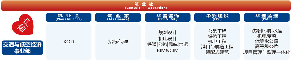 定位:交通和低空经济业务集群,包括“规划设计、机电设计、铁路/公路/民航/水运设计、公路工程、铁路工程、机电工程、港口与航道工程、装配式建筑、铁路/公路/民航/水运、机电专项、低等级公路、高等级公路、项目管理与监理一体化”