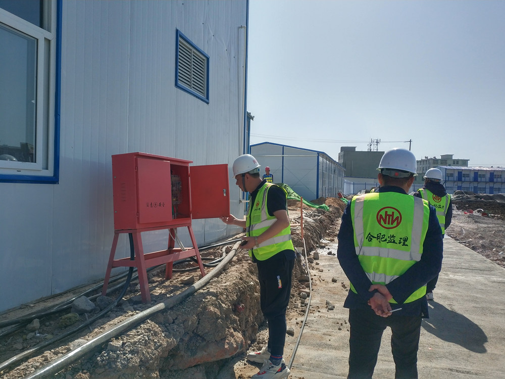 2021年4月16日,合肥监理现场交付事业部副总经理何国丰来到宿州市灵璧县南姚里项目对该项目例行巡查,该项目为灵璧县建投南姚里项目设计采购施工总承包EPC工程,由中国一冶集团有限公司承建,合肥监理负责工程监理和项目管理服务,是灵璧县今年确定实施的重点建设工程之一,该项目已于4月8日正式开工。自项目开工建设以来,各项工作推进平稳有序,目前已完成场地平整进入打桩阶段,生活区临建及设施已经搭建完毕,何总主要就项目临时用电进行了详细检查,在检查过程中发现部分配电箱箱门锈蚀严重,不接PE线,还存在少量私拉乱接现象。何总针对现场用电情况发现的问题及时和公司驻场项目部监理人员进行了详细沟通,并要求驻场监理人员立即向施工单位提出整改措施。最后何总对公司驻场监理人员提出:一定要严把施工质量及安全生产,要创优质工程,力争获取“黄山杯”或“鲁班”奖。