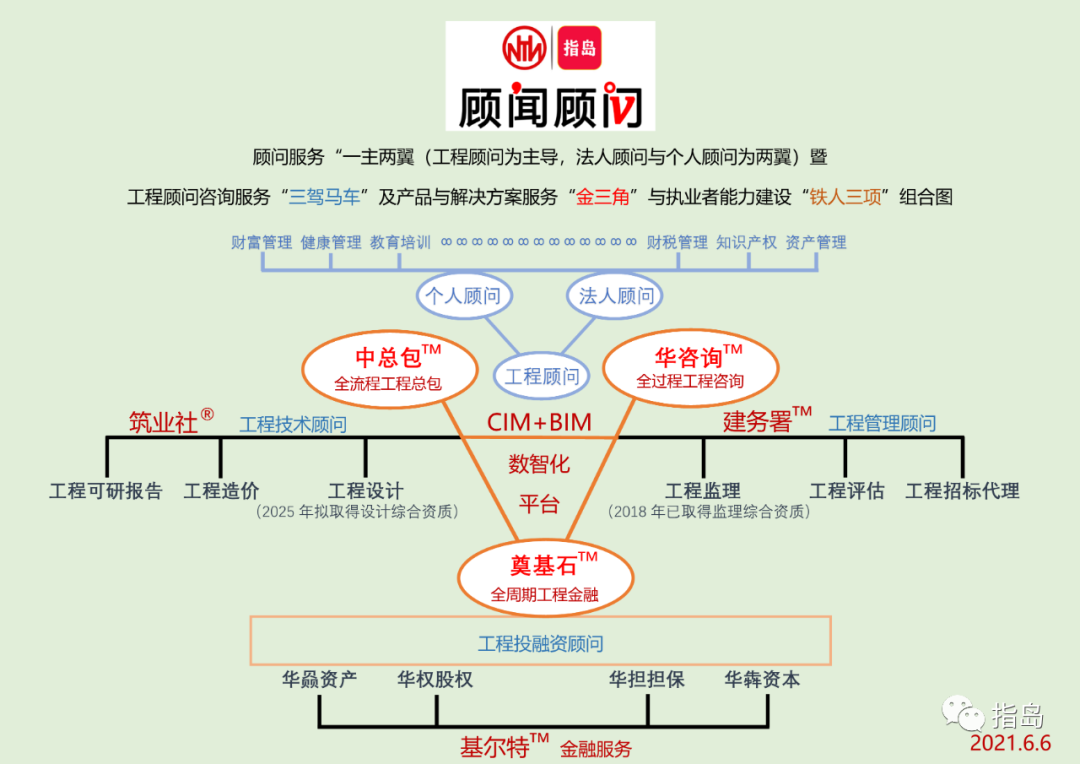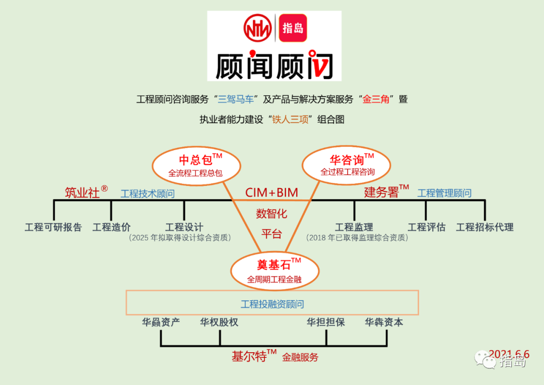 但经检验,自觉后劲不足,唯紧抓研发不放,后于2020年编制“十四五”发展规划时提出全集团转型“顾问服务”主业。今年上半年,集团决定组建“顾闻顾问股份有限公司(筹)”,实施“工程顾问业务为主导,法人与个人的顾问业务为两翼”的平台化发展战略,工程顾问模式日臻成熟。